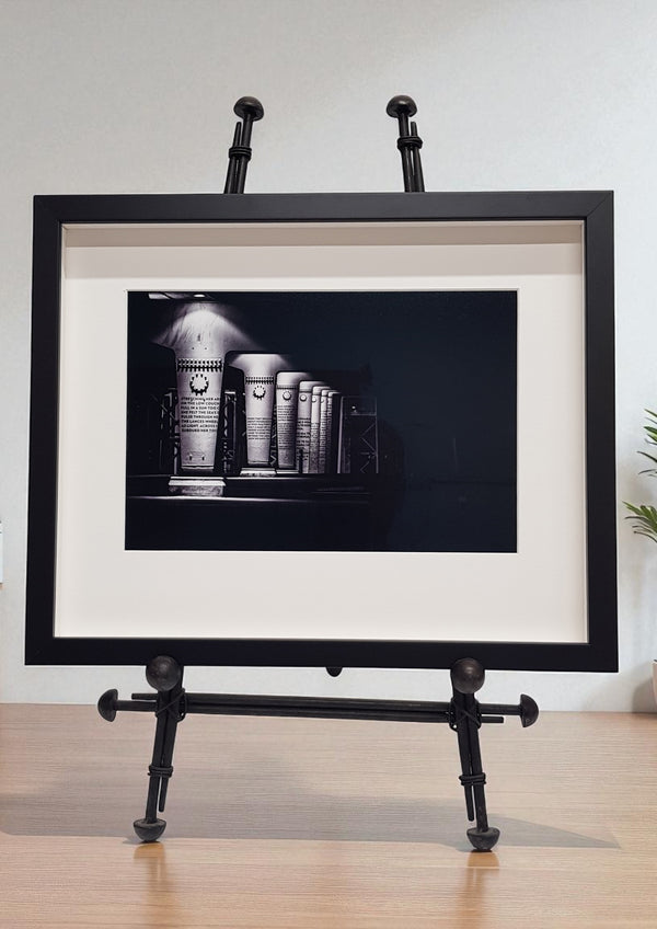 This is framed in a black 40mm x 20mm frame with a 50mm mat border. The image and mat are set back in the frame giving the shadow box effect.